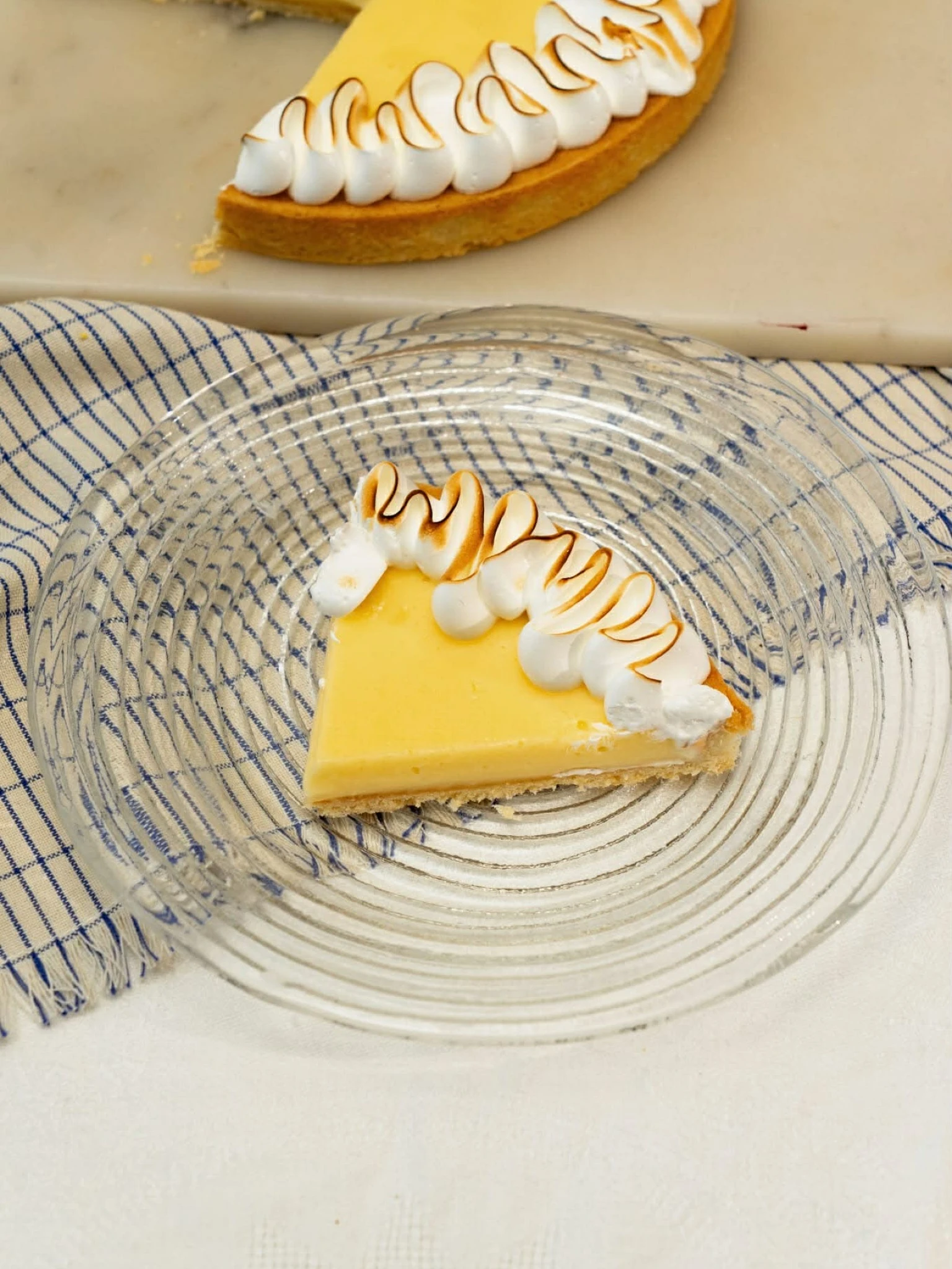 Chrupiący maślany spód wypełniony intensywnym kremem cytrynowym, przykryty lekką jak chmurka opalaną bezą włoską. Idealna równowaga słodyczy i cytrusowej świeżości